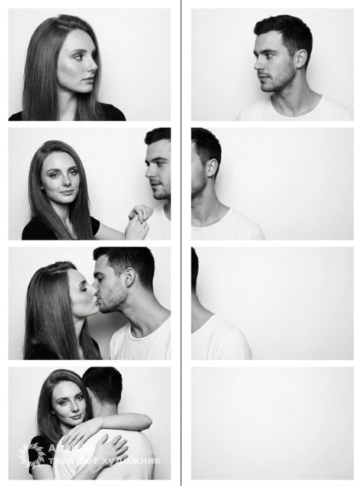 Чёрно-белая история любви, фотобудка с парой в кадре