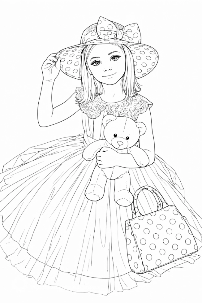 Девочка с плюшевым медведем и сумочкой