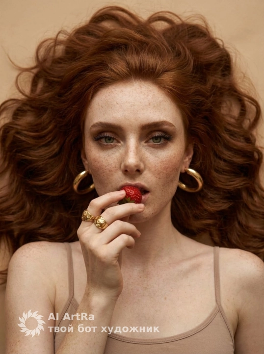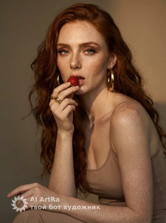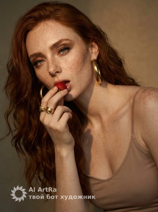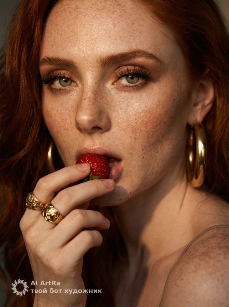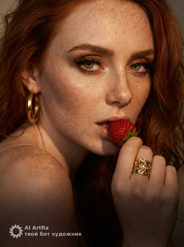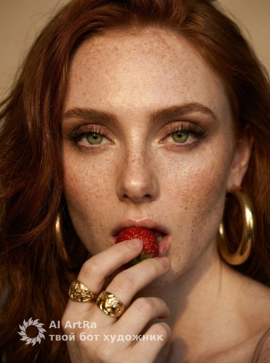 Например, наш портрет с женщиной, излучающей драматическую нежность, – это не просто изображение. Это глубокое эмоциональное выражение, где каждый элемент, будь то клубника в руке или роскошные украшения, передает уникальный момент. Не упустите шанс запечатлеть свою историю с помощью ИИ технологий!