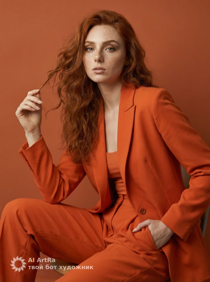 Элегантный портрет в насыщенном оранжевом костюме