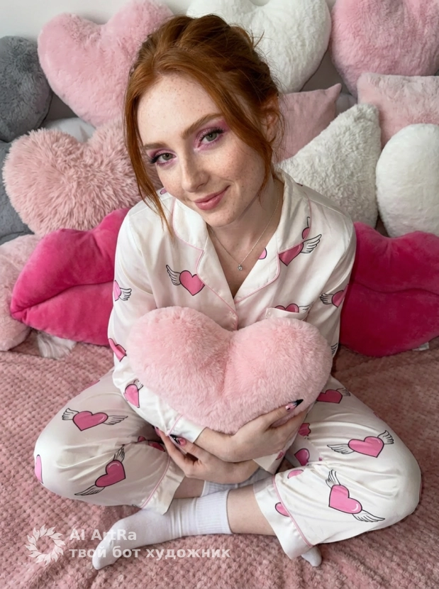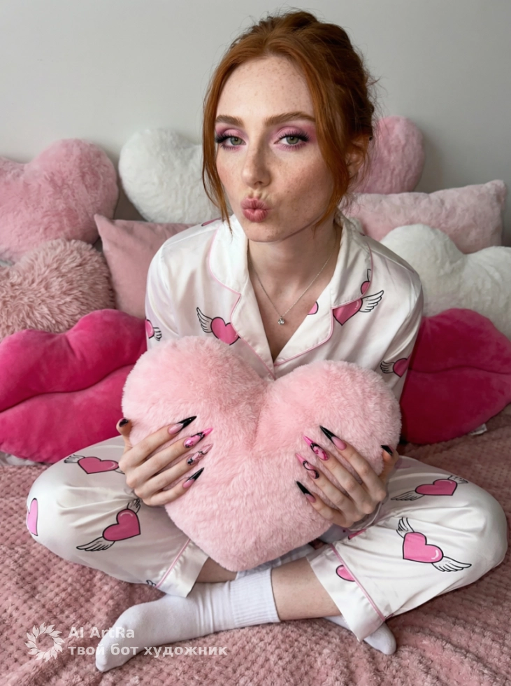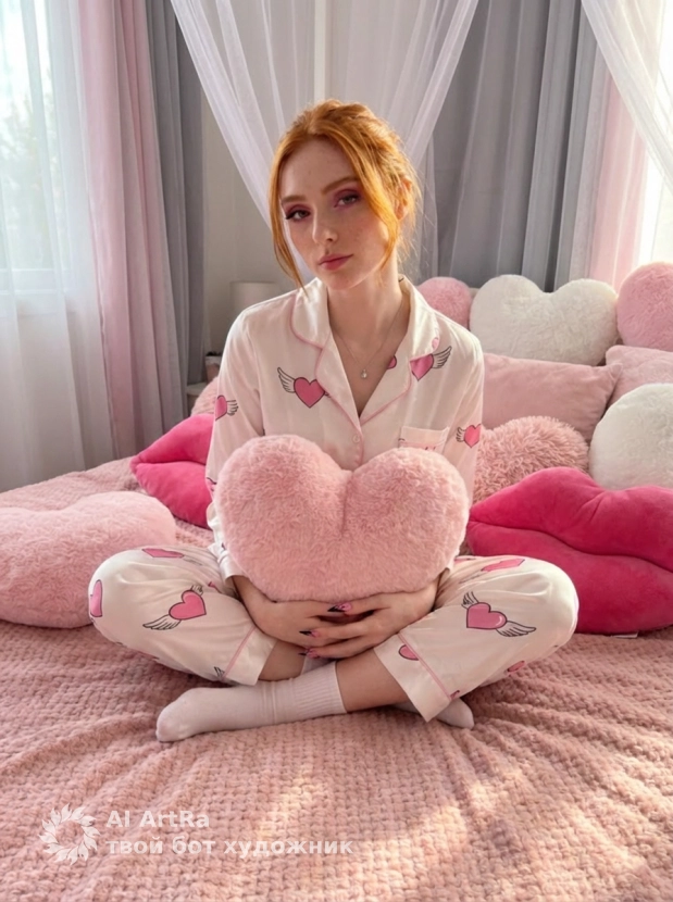 Эстетичная фотосессия с розовой подушкой-сердцем
