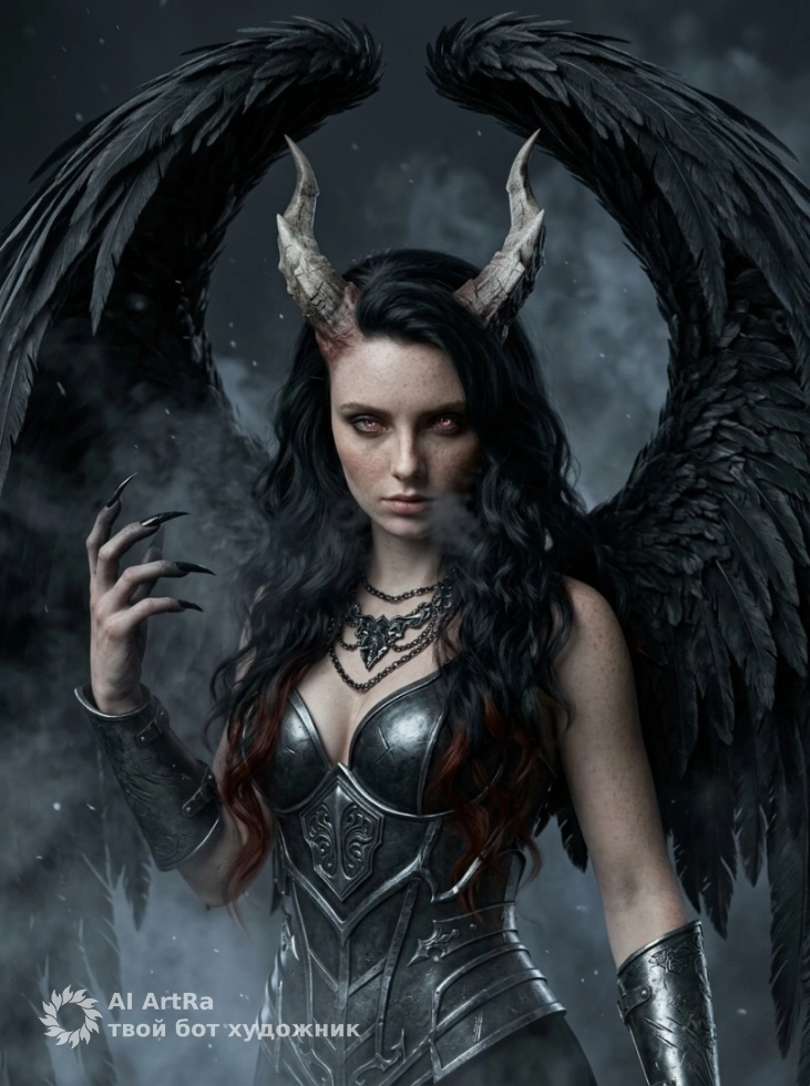 Фэнтези портрет с крыльями демонический образ и атмосфера