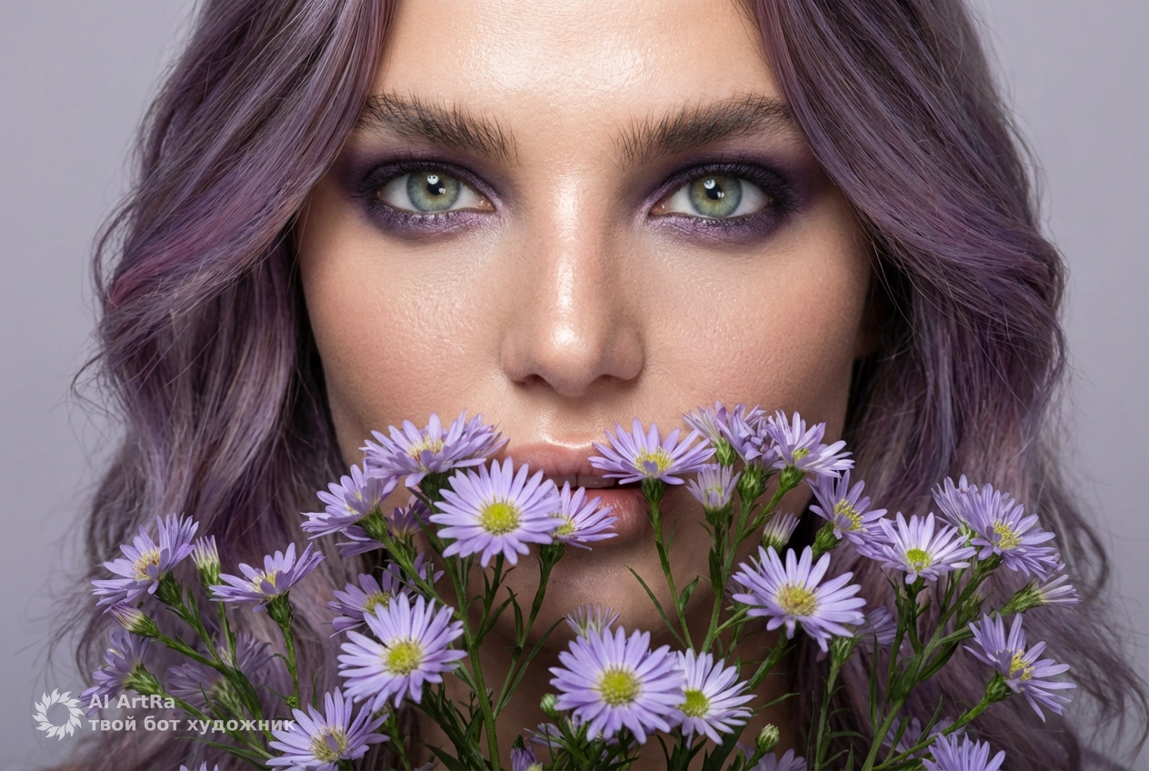 Представленная работа с фиолетовым этюдом передает не только красоту, но и атмосферу нежности. Каждый деталь, от текстуры кожи до мягкой, нежной цветовой палитры, создана для того, чтобы привлекать взгляды и вызывать эмоции. Идеально подходя для оформления профилей, контента для постов и обложек, такие фотографии сделают вас запоминающимся в глазах аудитории.