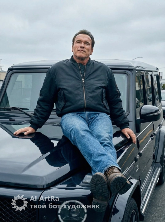 Outfit: oversized bomber jacket, relaxed-fit jeans, heavy boots. Lighting: overcast, cinematic reflections on the car. Camera: eye-level, not wide — medium crop. Mood: confident, effortless, modern.