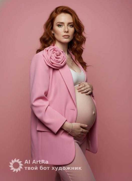 Studio location: solid pink background, no texture.