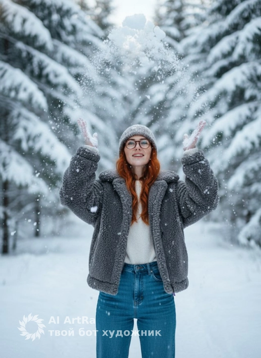 Создай ультрареалистичное фото по моему селфи. Сохрани мою внешность строго 1 к 1: те же черты лица, форма головы и челюсти, нос, губы, глаза, брови, линия роста волос, цвет и текстура кожи, естественная асимметрия. Не меняй мой возраст и пропорции лица. 1) Переодень меня: в тёплый зимний образ: вязаная шапка крупной вязки нейтрального серого цвета, объёмная мягкая куртка или шубка «тедди» серо-графитового оттенка, под ней светлый пушистый свитер (молочный или белый), прямые или слегка зауженные синие джинсы с высокой посадкой. Образ уютный, повседневный, без вырезов и откровенных деталей, без ярких логотипов. 2) Перенеси меня в локацию: заснеженный хвойный лес. Я стою на тропинке между пушистыми елями, ветки вокруг плотно покрыты свежим снегом. Фон мягко размытый, чтобы считывались силуэты заснеженных деревьев и глубина пространства. В воздухе может быть лёгкий снегопад или отдельные снежинки. 3) Поза и настроение: покажи меня по пояс или до бёдер. Я стою лицом к камере,подкидываю снег наверх , как будто радуюсь снегу; куртка чуть распахнута, но свитер полностью закрывает тело. Плечи расслаблены, поза естественная и свободная. Лицо чуть приподнято, взгляд направлен вверх выражение лица как на исходном фото, ощущение зимней сказки. 4) Обработка фото и свет: сделай мягкий дневной зимний свет, как в пасмурный день или при низком солнце: никаких жёстких теней, ровное освещение лица. Цвета холодные, снежные: снег чисто-белый с лёгким голубоватым оттенком, зелень елей приглушённая. Кожа выглядит естественно, без пластикового эффекта и сильной ретуши, сохраняется фактура. Общий контраст умеренный, картинка яркая, но не перенасыщенная, в единой холодной зимней палитре. Негативный промпт: другой человек вместо меня, изменение черт лица, сильное омоложение или состаривание, пластиковая кожа, сильная ретушь, размазанные детали лица, улыбка с видимыми зубами, ноги, нет действия подкидывания вверх снега, шубы, меха и «люксовые» вещи, которых я не просил(а). Городской фон, интерьер, пляж или летний пейзаж вместо заснеженного леса. Слишком тёплая оранжевая картинка, кислотные цвета, аниме-стиль, 3D-рендер, мультяшный или карикатурный стиль, текст, логотипы, водяные знаки.