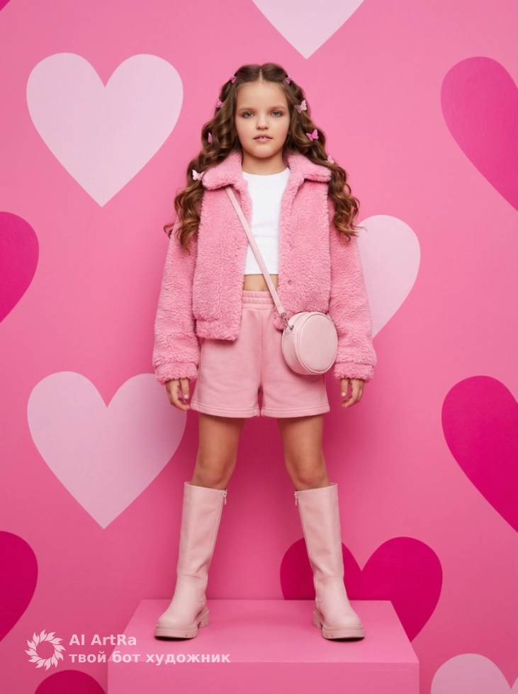 Представьте себе, как вы смотритесь на фото в стильной пушистой куртке, нежных шортах и розовых сапогах, стоя на розовом подиуме! Чистый поп‑арт, который будет в центре внимания, достаточно одного взгляда на такие кадры, чтобы привлечь внимание к вам или вашему бизнесу.
