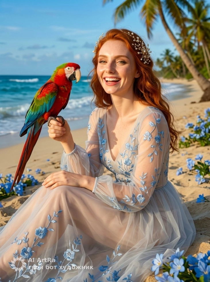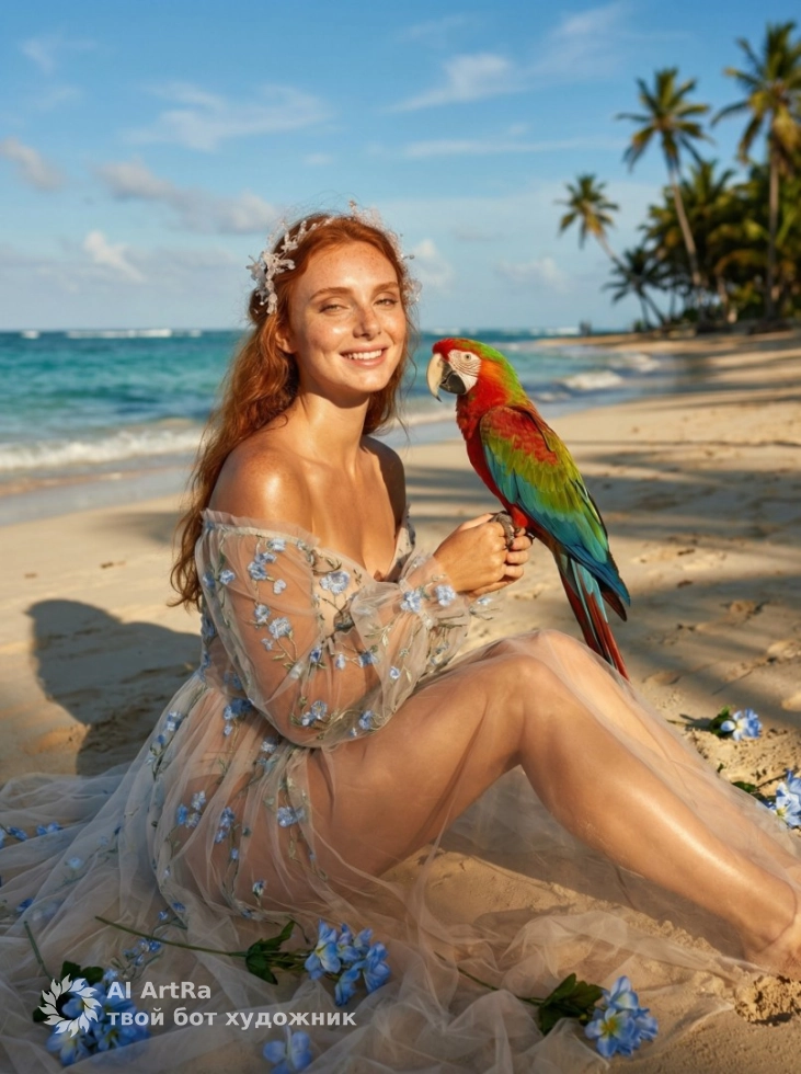Фотосессия с попугаем у океана: яркий тропический портрет