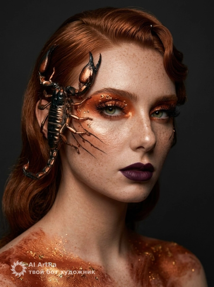 Фотосессия со скорпионом на лице: контраст и драматизм