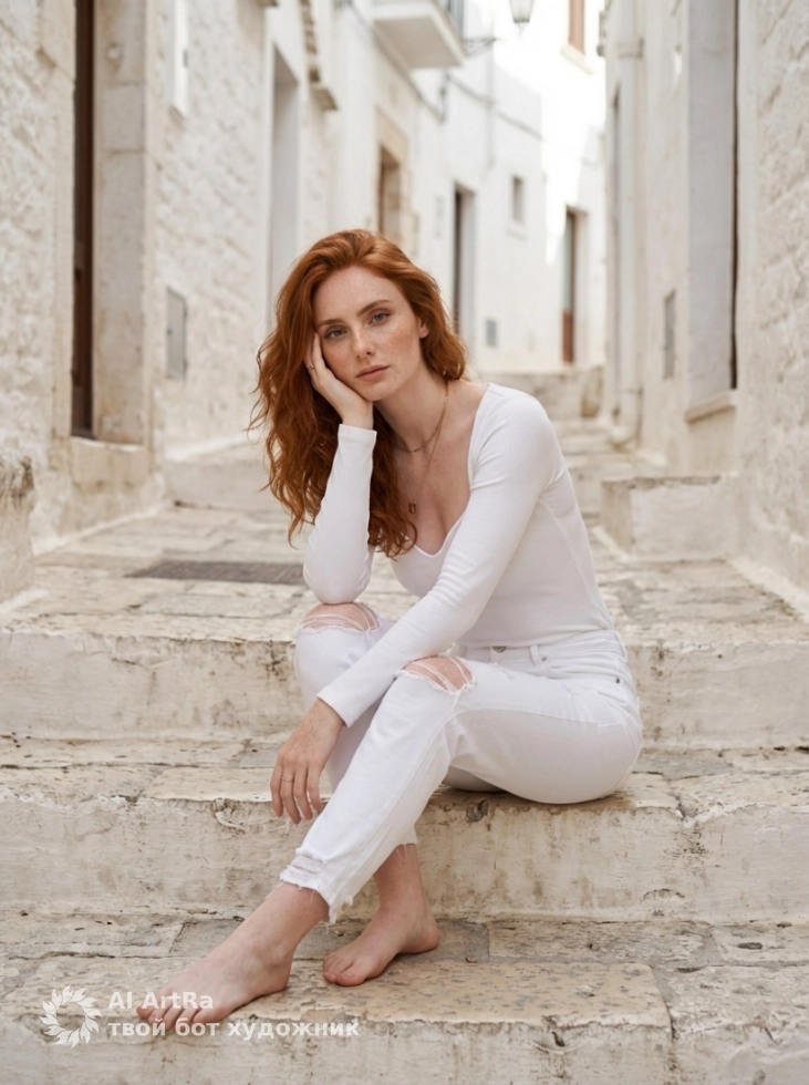 Вдохновитесь теплым летним днем, когда легкий ветерок нежно касается лица и солнечные лучи мягко освещают вашу фигуру, создавая теплые тени на фоне белоснежных стен. Каждое фото — это миг отдыха и радости, который вы сможете сохранить навсегда.