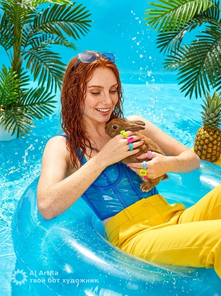 Погрузитесь в мир цветной эстетики и создайте уникальную фотосессию, которая подчеркнет ваше индивидуальное видение. Яркие образы у бассейна в стиле поп арт — это не только отличный способ выразить свои мысли и эмоции, но и возможность заявить о себе в социальных сетях. Позвольте своей креативности раскрыться: меняйте промпт и образы так, как вам нравится, чтобы каждая фотография стала отражением именно вас.