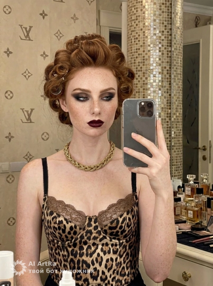 Представьте себя на фоне классического интерьера, уверенной и элегантной в наряде с ярким леопардовым принтом. Именно так выглядит момент подготовки к выходу в свет, когда каждый элемент вашего образа говорит о вашей индивидуальности. Обратите внимание на выбор деталей: прическа, макияж и аксессуары сделают ваш стиль завершенным и запоминающимся.