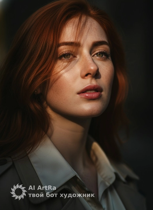 Гиперреалистичный кинематографический эффект Создайте фотореалистичное изображение в разрешении 8K, используя прикреплённую фотографию. Портрет крупным планом женщины с длинными, слегка развевающимися на ветру волосами, которые падают ей на лицо. Её выразительные светлые глаза смотрят вверх и вправо, ловя резкий диагональный луч естественного света, который освещает выступающие части её скул, носа и пухлых, блестящих губ розовато-лилового оттенка. На ней лёгкая шёлковая рубашка. Остальная часть её лица и фон погружены в глубокую драматическую тень, подчёркивающую игру света и тени (кьяроскуро). На левом плече видны едва заметные складки её тёмной одежды. Изображение должно передавать таинственное и задумчивое настроение, с невероятной детализацией кожи, прядей волос и едва заметных бликов в глазах и на губах. Используйте внешность пользователя в масштабе 1:1 — лицо, кожу, волосы и тело без каких-либо изменений.