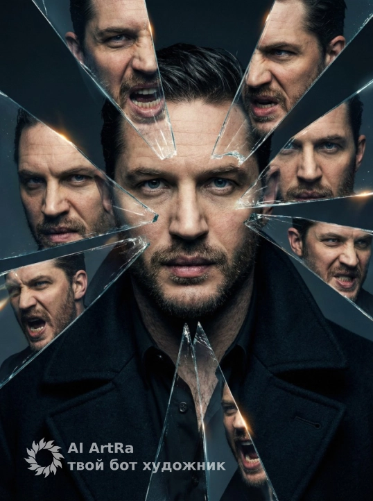 Создать драматическое изображение мужчины с фото 100% сходство с фрагментированным стеклом, отражающим несколько лиц одного человека, которые выражают разные эмоции — от злости до напряжённого спокойствия. Главный фокус — мужской портрет в строгой одежде, выражающий интенсивные чувства, при этом лицо должно быть разбито на части стеклом, создавая эффект многогранности личности. Использовать яркие контрасты в свете и тени, чтобы усилить драматизм сцены. Визуальные элементы стеклянных осколков должны быть чётко видны, с бликами света на них, создавая динамичный и эмоционально насыщенный эффект. Цветовая палитра — преимущественно холодные оттенки с яркими акцентами на черты лица.