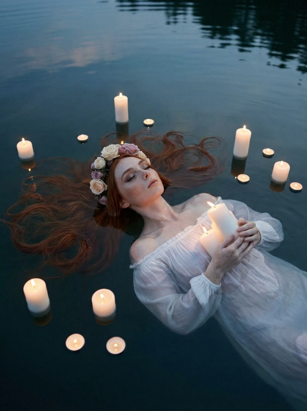 Ваша мечта о незабываемом готическом портрете теперь доступна с помощью нашего сервиса АРТРА. Представьте себе великолепное изображение с женщиной, выходящей из спокойного водоема, окруженной мистической атмосферой свечей. Это не просто фотография, а история, которую вы сможете рассказать своим подписчикам и клиентам.