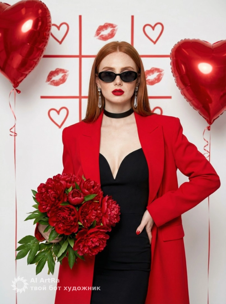Гламурный образ с алыми пионами и стильным пиджаком позволит подчеркнуть вашу уверенность и красоту. Такую фотосессию легко адаптировать для любых нужд: вы можете использовать её для создания качественных аватарок, эстетичных обложек и контента для постов, который будет поражать своей гармонией и красотой.