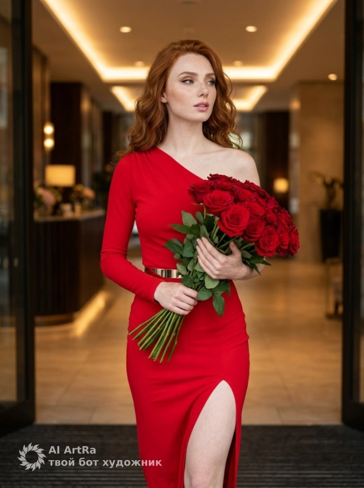 Мечтаете о кадрах, которые подчеркивают вашу индивидуальность и стиль? Наша люксовая фотосессия в отеле поможет вам осуществить эту мечту! Представьте себя в изысканном красном платье, уверенно шагаете по элегантному входу, держа в руках большой букет ярких красных роз. Такие фотографии идеально передадут атмосферу успеха и уверенности, а также станут отличным дополнением для вашего личного бренда.