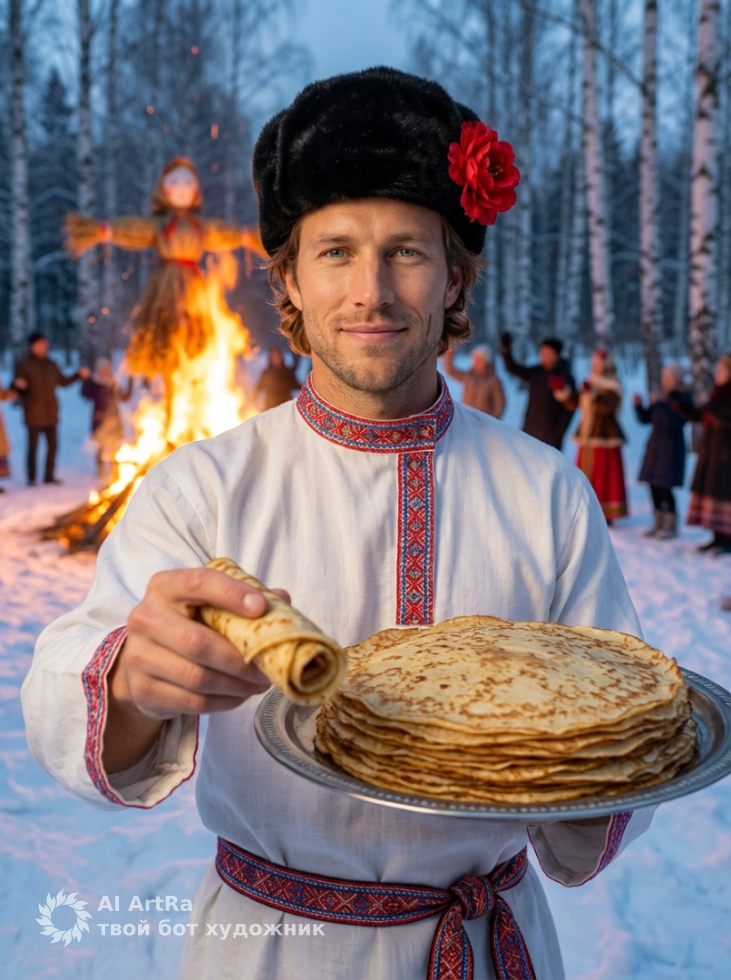 Масленица – это не только праздник, но и замечательная возможность выделиться в мире социальных сетей, создать уникальный личный бренд и оставить яркий след в памяти ваших друзей и подписчиков. Зачем довольствоваться обычными фотографиями, если можно получить высококачественные гиперреалистичные портреты в традиционных нарядах?