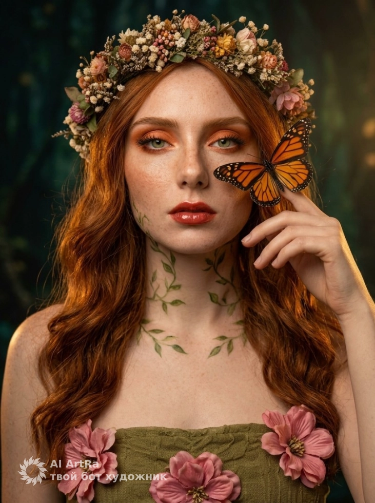 Каждый мечтает о неповторимых и волшебных изображениях, которые запомнятся и привлекут внимание. Наша мистическая фотосессия с бабочкой — это именно то, что вам нужно для создания уникального контента, который выделит вас среди других. Изображение молодой женщины с великолепным венком из цветов и бабочкой на руке — это больше, чем просто картинка. Это возможность показать ваше истинное «я», создать атмосферу и подчеркнуть уникальность вашего стиля.