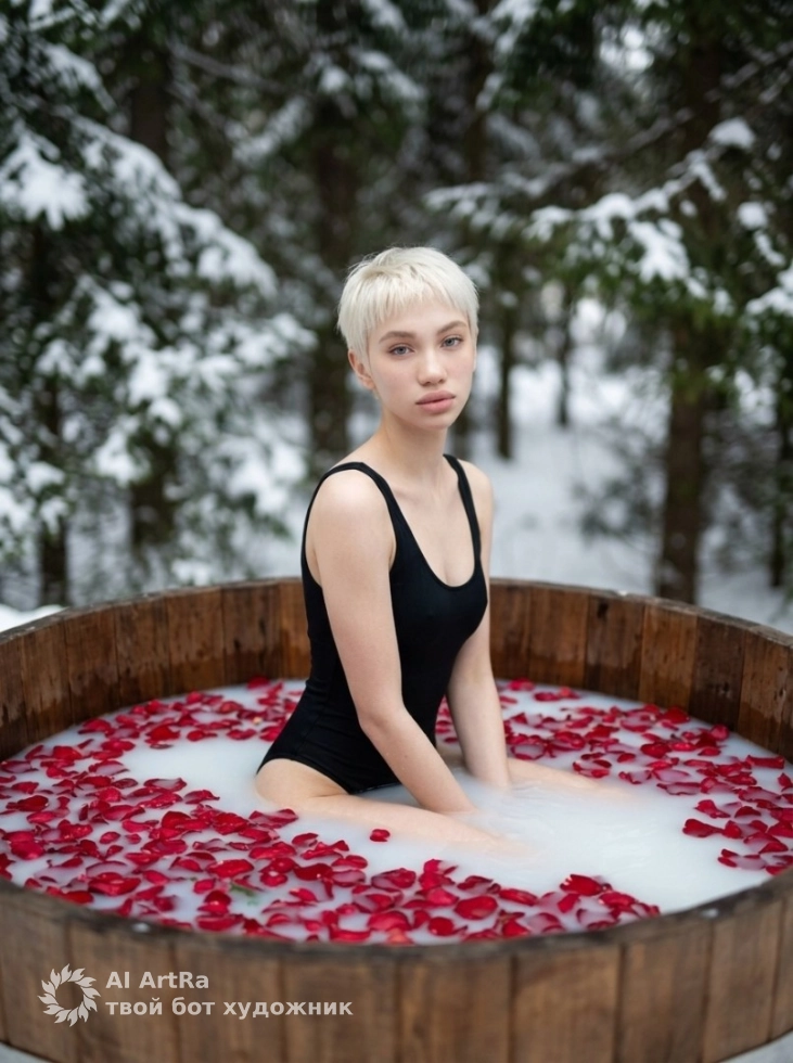 Хотите поразить своих подписчиков и создать неповторимый имидж? Наша фотосессия в уникальном стиле с молочным чаном среди зимних лесов - именно то, что вам нужно! Представьте себя в окружении мягкого света, создающего атмосферу уюта и спокойствия, когда вы находитесь в элегантной позе в большом деревянном чане, наполненном молочной водой и украшенном красными лепестками роз. Это не просто фотография, это шанс запечатлеть ваш стиль и индивидуальность с высокой эстетикой.