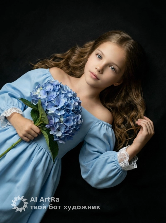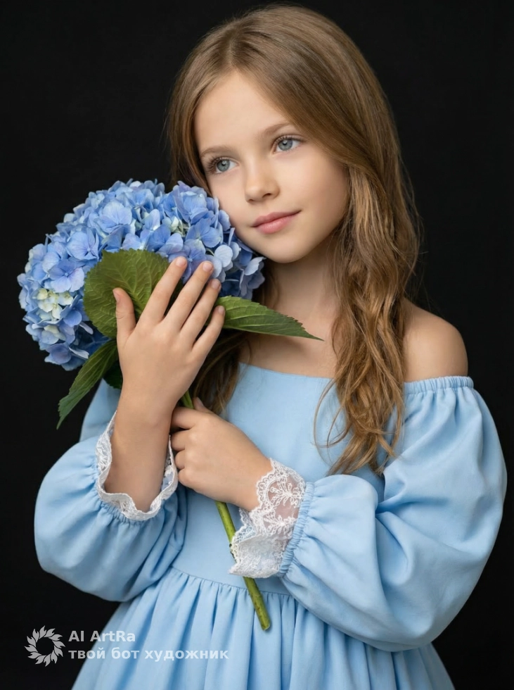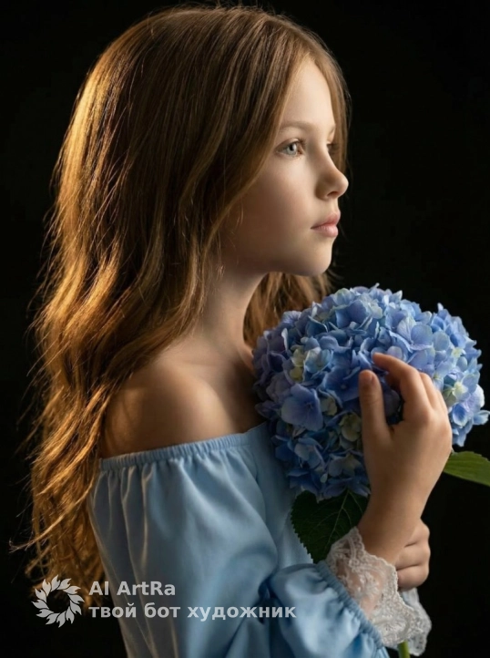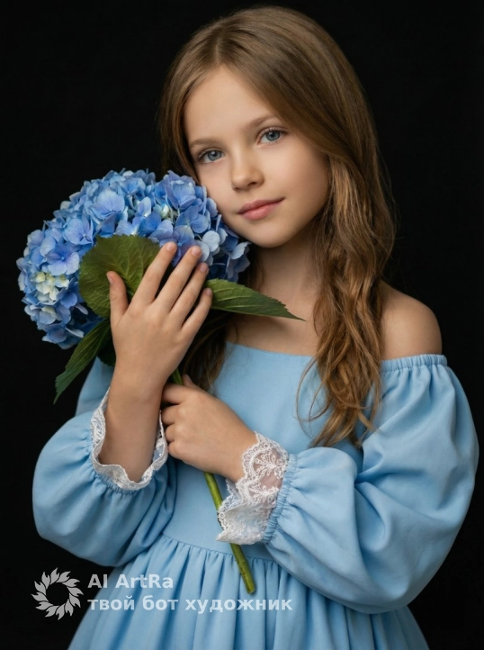 Нежность в голубом: портрет с гортензией