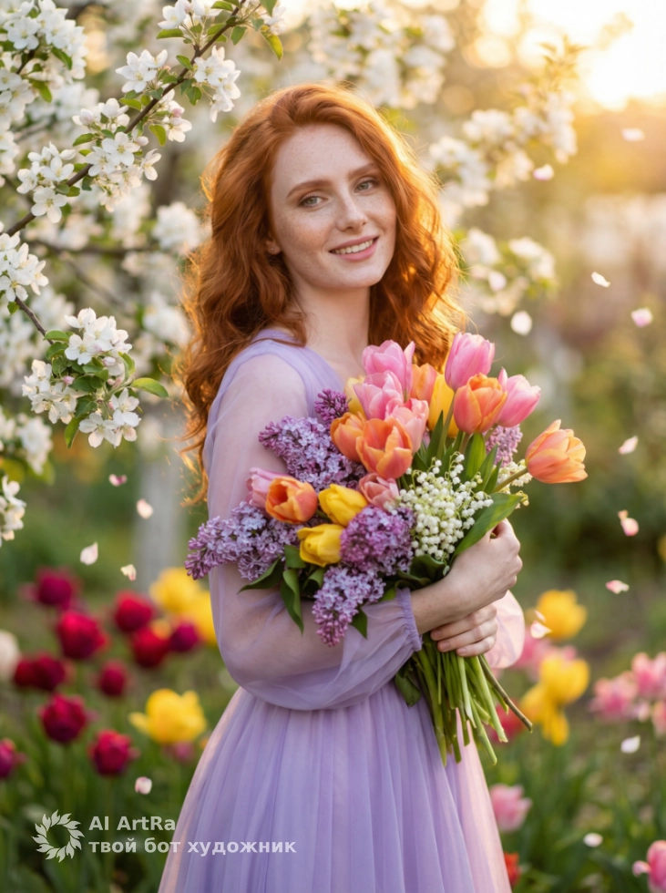 Весна - это время новых начинаний и ярких эмоций. С помощью нашего сервиса ARTRA вы можете создать уютную фотосессию, в которой будете выглядеть так, как хотите. Представьте себя в ярком цветущем саду, окруженном весенними цветами, где цветы радуют глаз, а утонченные наряды подчеркнут вашу индивидуальность. Мы предлагаем вам возможность раскрыть свою настоящую красоту и вдохновить других своим образом.