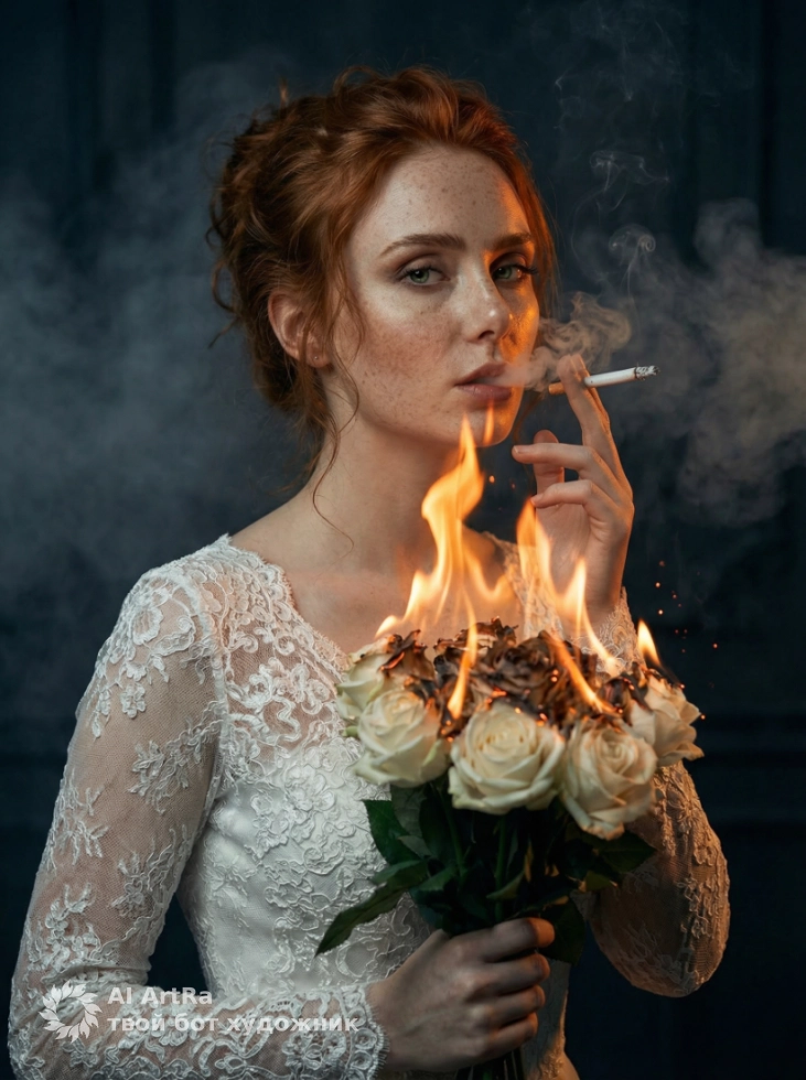Добро пожаловать в мир вдохновения и креативности! С помощью наших услуг вы сможете создать великолепные изображения, отражающие вашу уникальную личность. Подумайте только, как ваша готическая невеста в элегантном белом платье, держащая горящий букет белых роз, будет выглядеть на фоне тёмных теней и теплых огней — это не просто фотография, это настоящий арт-объект!