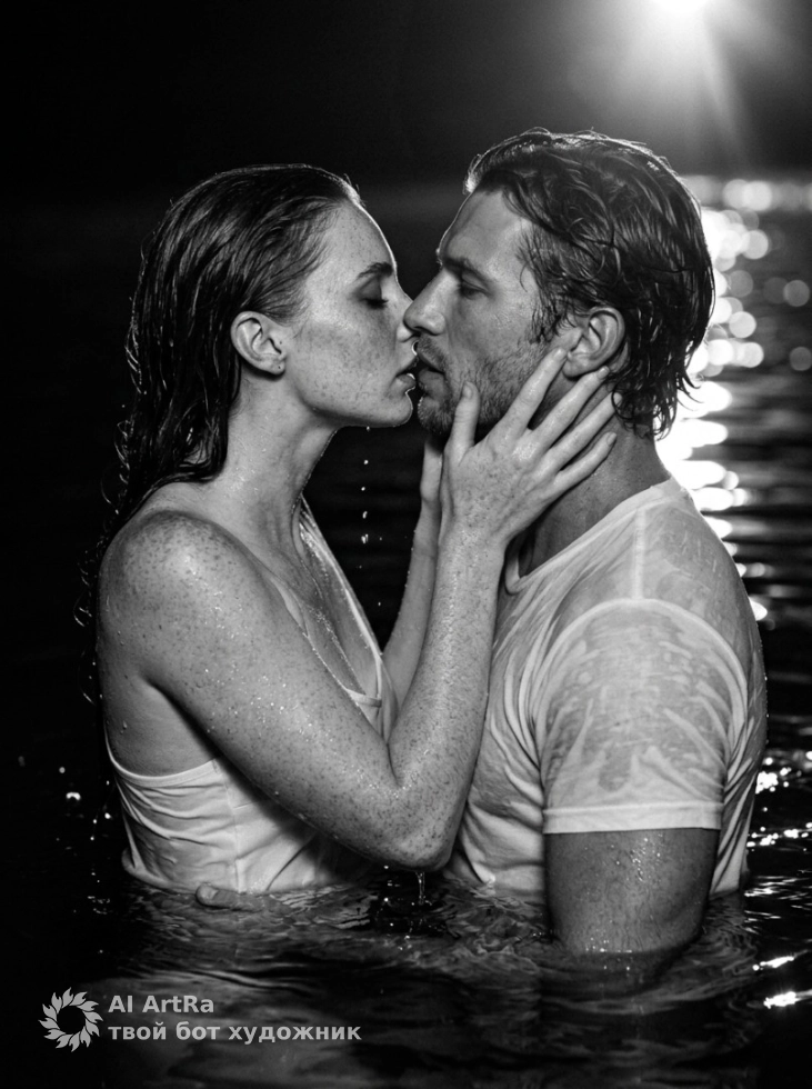 Представьте свою пару в безмятежной ночной обстановке, когда мягкие блики воды освещают их лица, а страстный поцелуй запечатлевает тонкость их чувств. Такой портрет станет не только украшением вашего профиля, но и выразительной визуализацией сильной связи между вами.