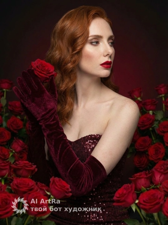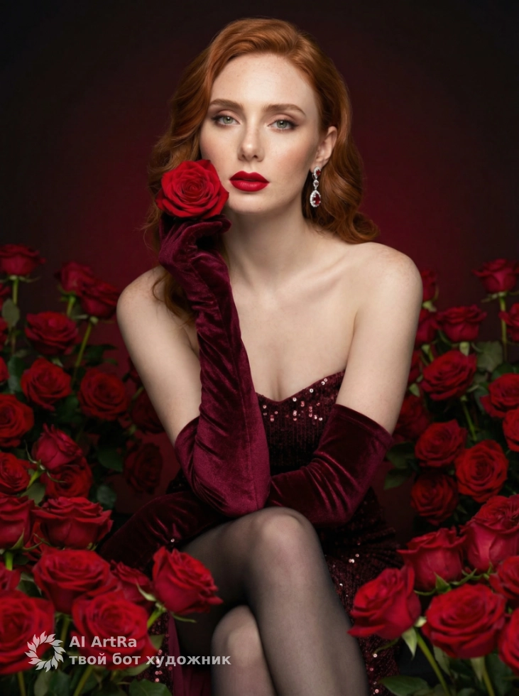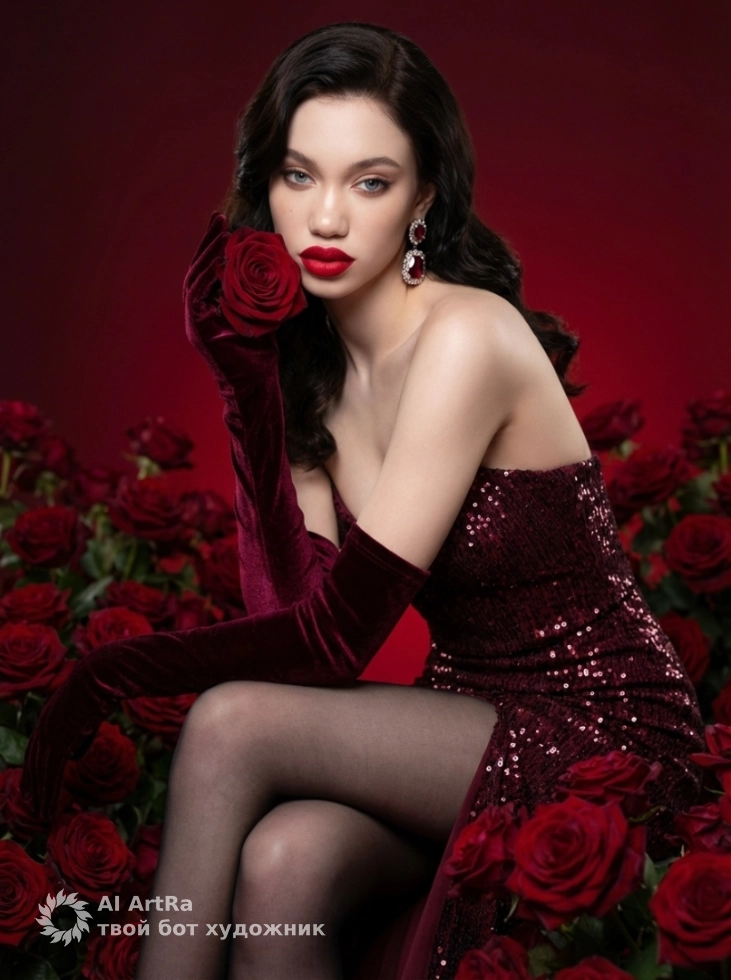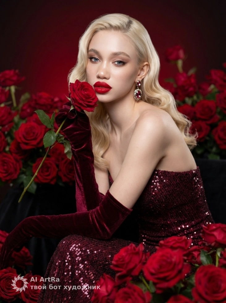 Роскошь алых роз: портрет в стиле высокой моды