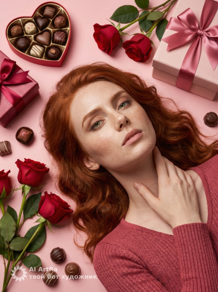 Представьте себе, как ваша идеальная фотосессия запечатлевает романтические моменты: элегантная женщина на розовом фоне, окруженная подарками, шоколадом и цветами, выглядит неотразимо. Эта картина — не просто фотография, это отражение ваших чувств и стремлений, которые могут стать частью вашего личного бренда.