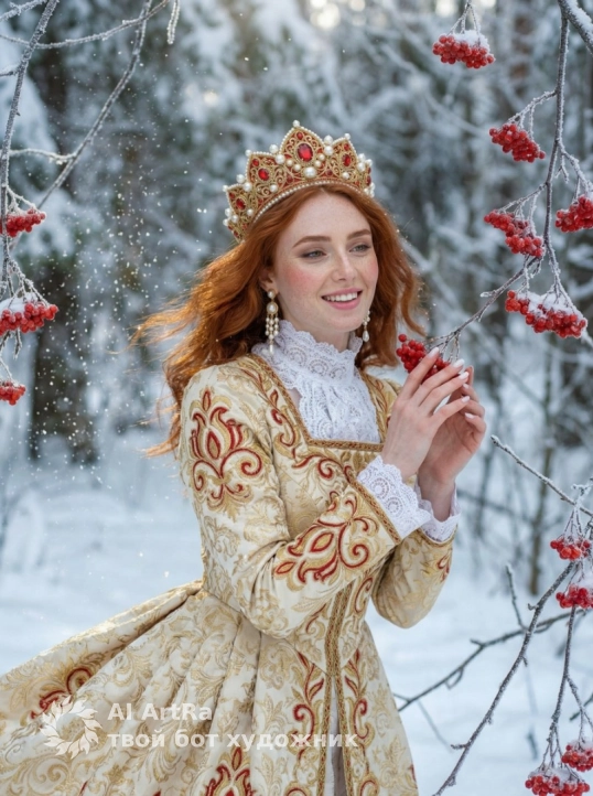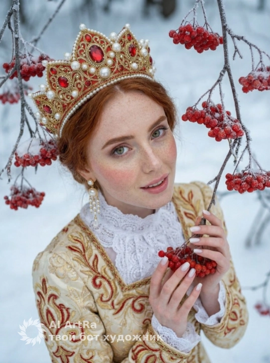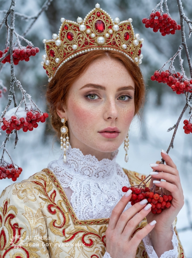 Русская царевна среди зимних ягод