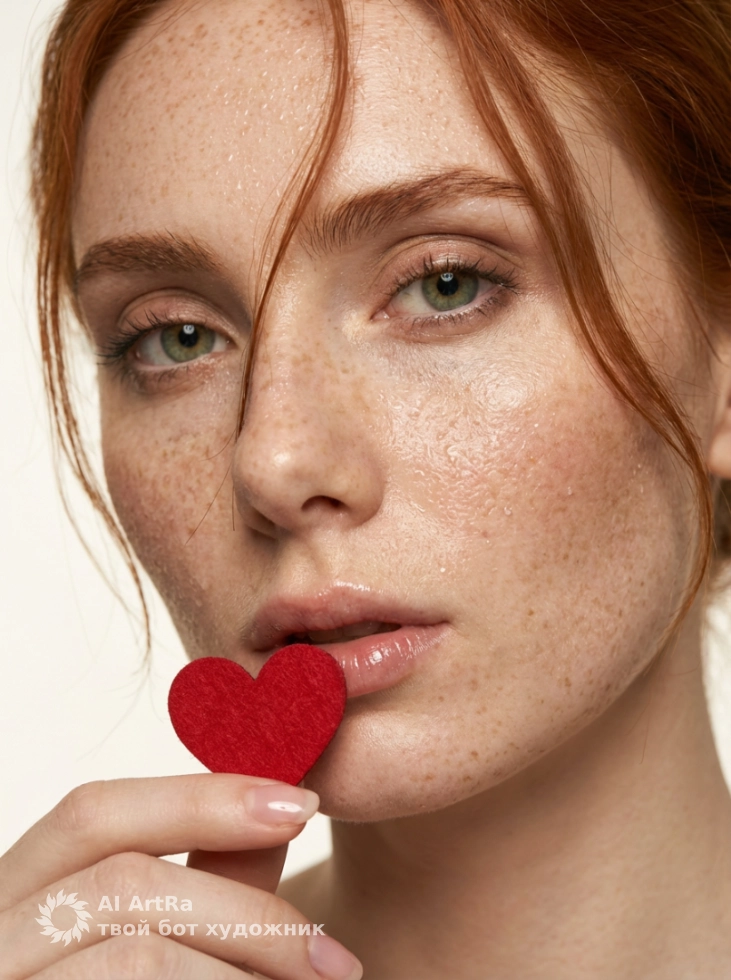 Каждый портрет передает эмоции и атмосферу, как в нашем промпте: взгляд прямо в камеру, сердце у губ… это реалистичный момент, который можно пережить снова и снова. Погрузитесь в мир, где каждая деталь имеет значение, будь то капли росы на коже или естественная прическа, которые подчёркивают вашу индивидуальность.