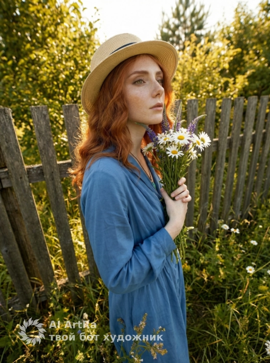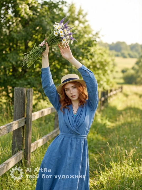 Погрузитесь в мир красоты и вдохновения с нашими ИИ фотосессиями на ARTRA! Представьте себя в образе, который идеально подчеркивает вашу индивидуальность — светлая соломенная шляпа, романтичные полевые цветы и нежные солнечные блики создают атмосферу настоящего летнего счастья. Мы предлагаем уникальную возможность сконструировать каждую деталь вашего образа: от выбора наряда до мимики и позы.