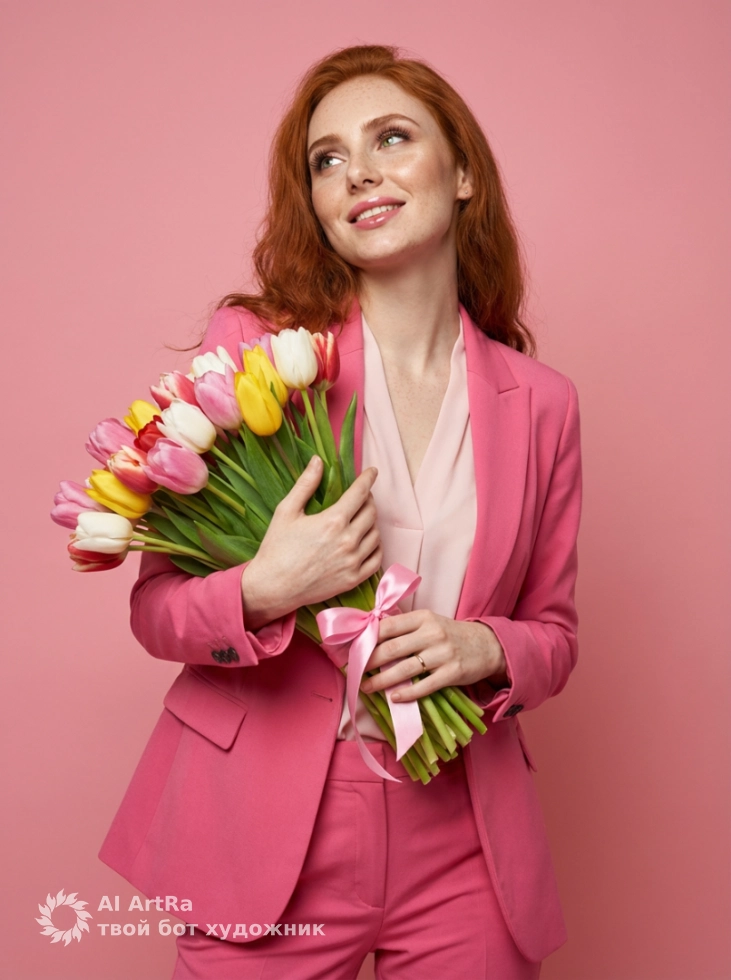 Вы мечтаете о выразительных и стильных фотографиях, которые подчеркнут вашу индивидуальность? Специально для вас мы предлагаем уникальную возможность создания ИИ фотосессии! Представьте себя с очаровательным букетом тюльпанов, в ярком и модном образе, который идеально впишется в ваш стиль и повысит привлекательность контента.