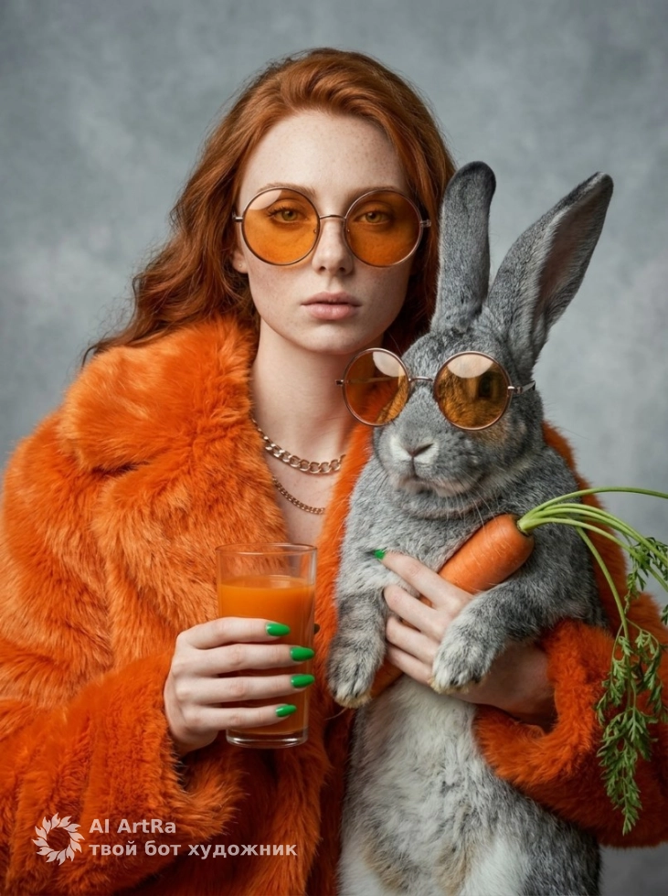 Каждая деталь важна: от аксессуаров и одежды до фонов и атмосфер. Сюрреалистичный портрет с нежной женщиной и пушистым кроликом станет не только эстетичным элементом вашего контента, но и привлечет зрителей своим уникальным подходом к моде и природе. Попробуйте – вдохновитесь и создайте свой идеальный образ с АРТРА!