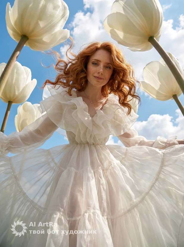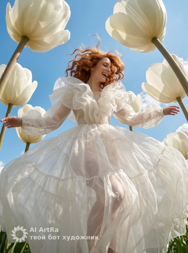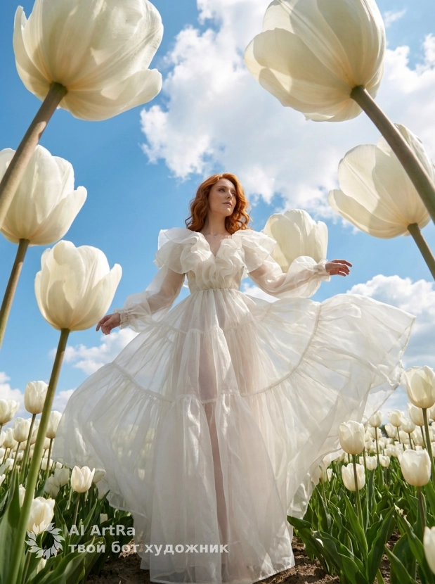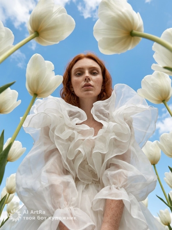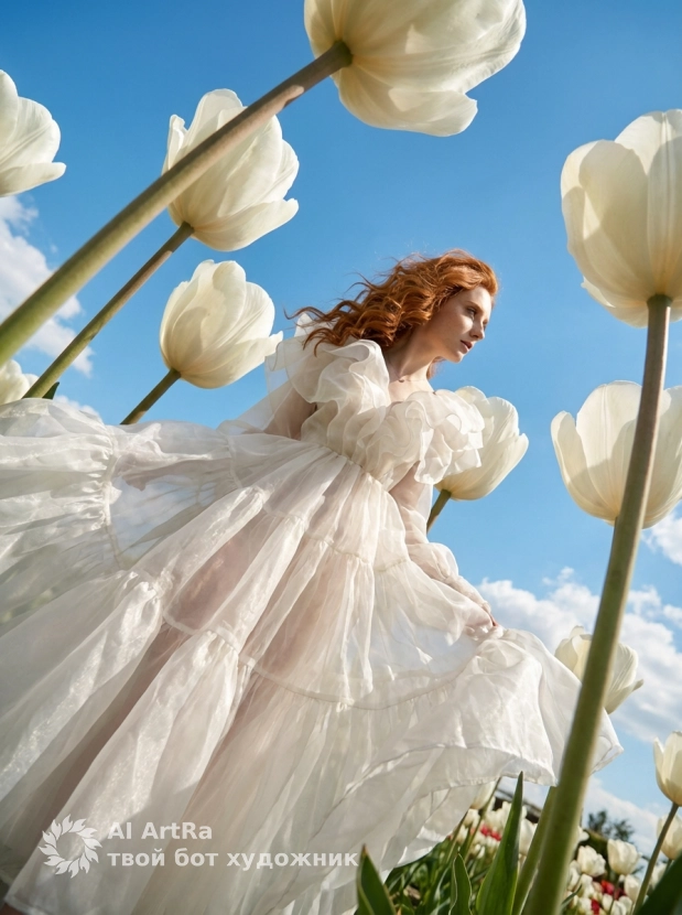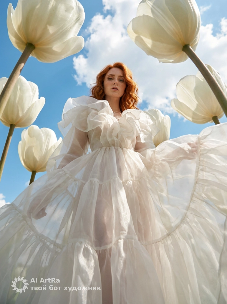 Наша фотосессия воображает мир, где вы оказались среди гигантских тюльпанов, привнося атмосферу сказки и высокомодной эстетики в вашу жизнь. Попробуйте создать свой собственный шедевр и покажите всему миру свою уникальность через призму искусства!
