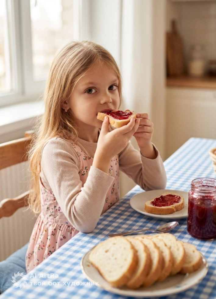 Представьте себе, как на одном из снимков вы облачены в светло-розовое платьице с мелким цветочным принтом, сидя в уютной атмосфере с хлебом и вареньем на столе. Уютный интерьер и естественный свет создадут идеальную обстановку для вашей истории. Дайте волю фантазии и создайте образ, который будет вызывать улыбку!