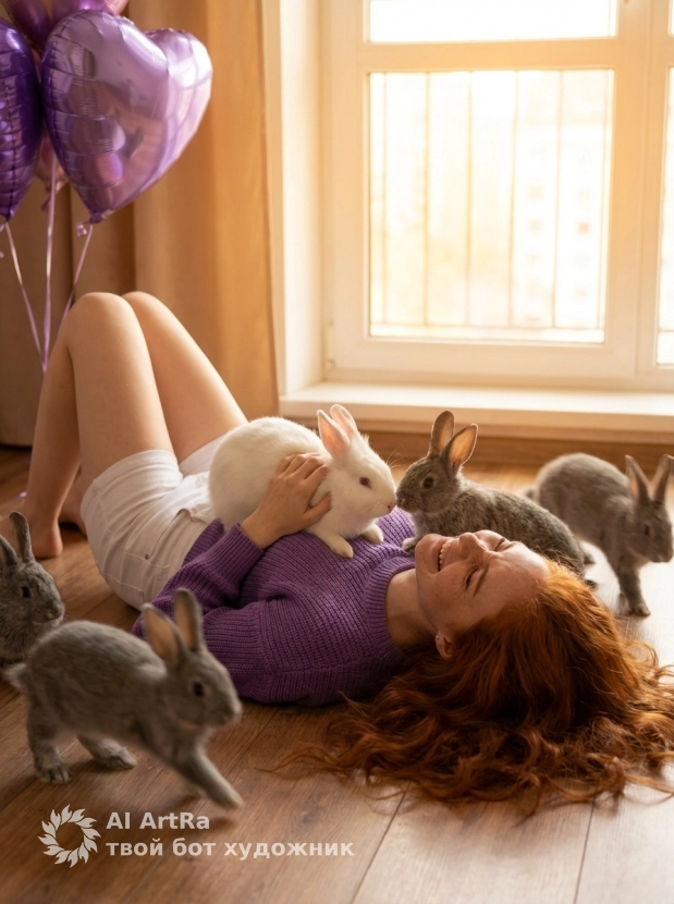 Вы когда-нибудь мечтали запечатлеть себя в уютной и игривой обстановке, окруженной милыми кроликами? Наша новая фотосессия предлагает именно это! Представьте, как вы обнимаете пушистых друзей на фоне нежного фиолетового цвета, с легким макияжем и естественным образом. Это чудесный способ создать запоминающийся и уникальный контент для ваших личных страниц и проектов.