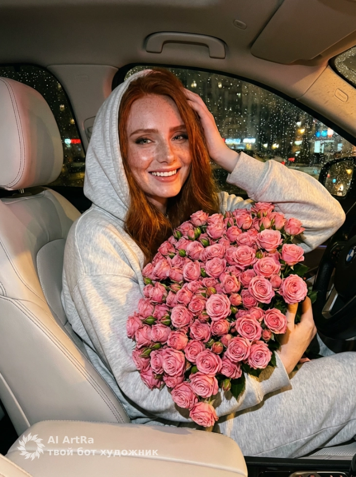 Каждая наша фотосессия — это уникальная возможность рассказать миру свою историю. Представьте себя в роли уверенной женщины за рулем автомобиля, с огромным букетом кустовых роз. Ваша расслабленная поза и естественная улыбка создадут теплую и уютную атмосферу, а фотореалистичные детали помогут вам запечатлеть этот момент навсегда.
