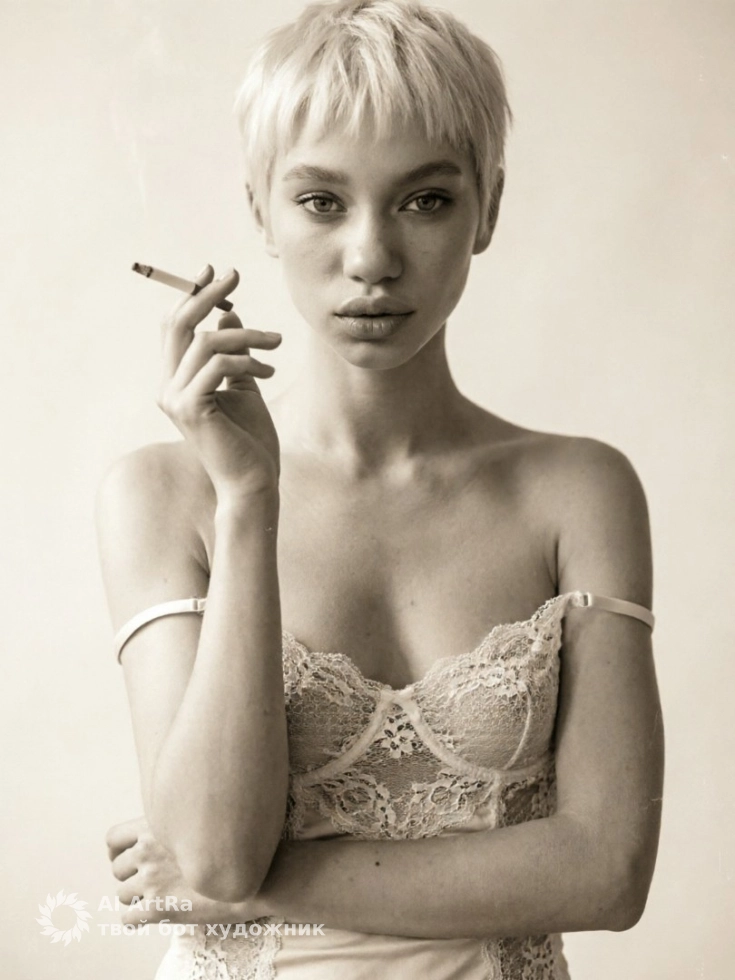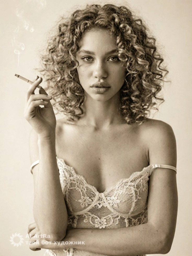 Винтажный портрет в студии с сигаретой и мягким светом