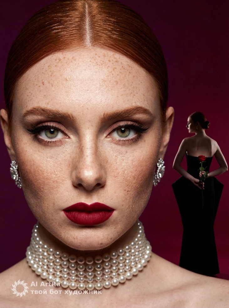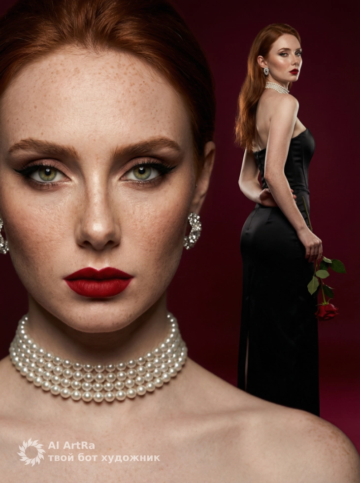 Представьте себе. Яркие рубиновые оттенки, выразительные крупные планы и подчеркнутая текстура лица создадут образ, который будет всегда с вами. Стилизация, детализированное освещение и мощные цветовые контрасты сами по себе расскажут историю, которую вы хотите донести до своей аудитории. С помощью нашего сервиса вы добавите элегантности и выразительности в каждую деталь.