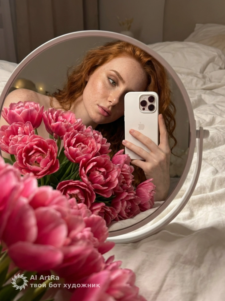 Каждому из нас иногда хочется запечатлеть момент красоты и стиля. Наша фотосессия в формате зеркального селфи позволяет вам создать идеальное изображение, подчеркивающее ваш индивидуальный подход к самовыражению. Представьте себе: вы держите в руках современный смартфон, а на переднем плане огромный букет ярко-розовых пионовидных тюльпанов, создающий атмосферу весеннего настроения и свежести.