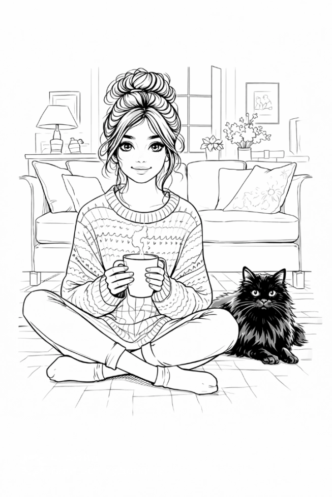 Женщина с кошкой в уютной комнате