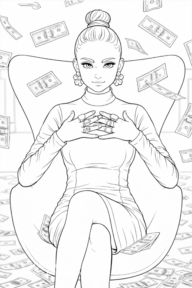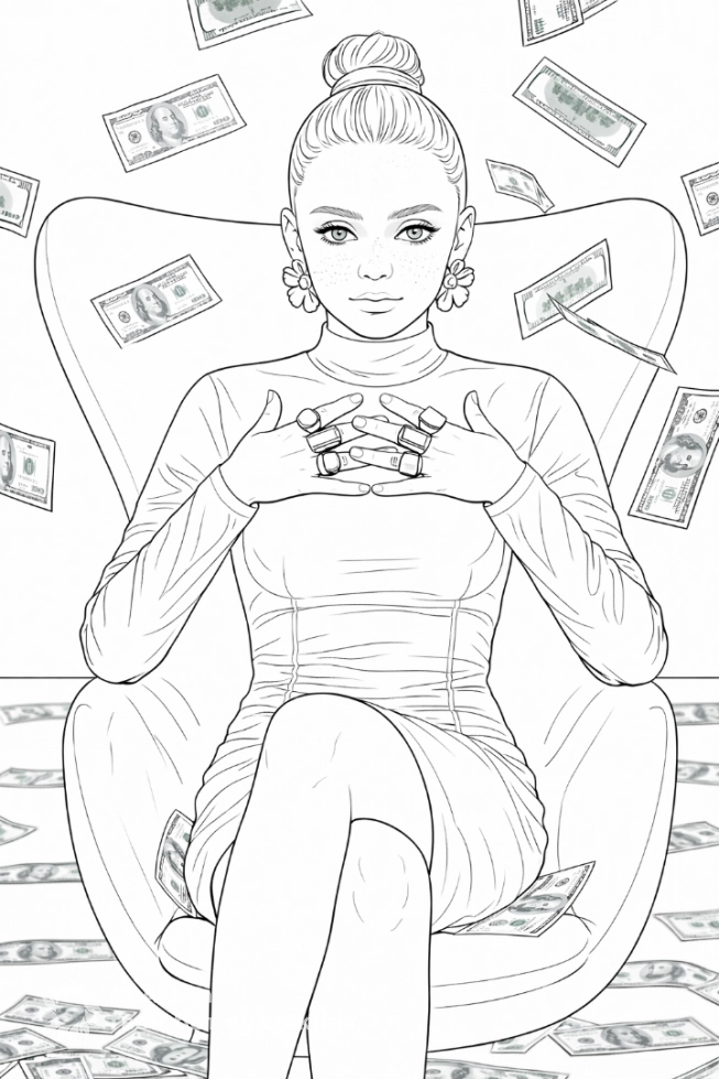 Женщина в кресле с деньгами