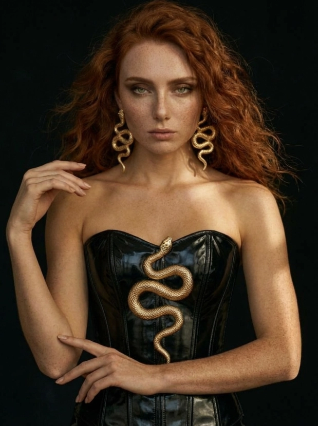 Только представьте: вы в чёрном корсете, который подчеркивает ваши лучшие качества, и золотая деталь в виде змеи добавляет вашему образу нотку роскоши и загадочности. Сочетая изысканность и дерзость, эти фотографии помогут вам не только создать привлекательный контент для постов и обложек, но и выстраивать свой личный бренд.