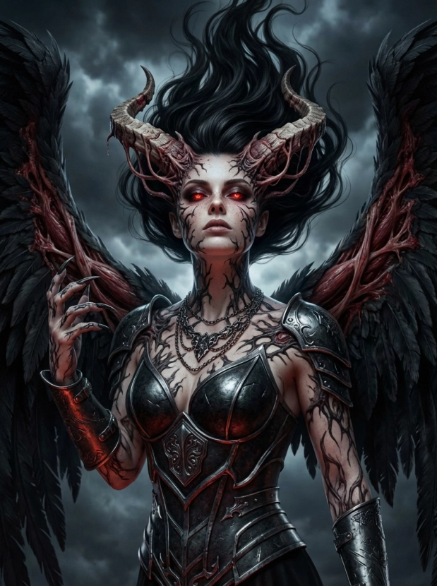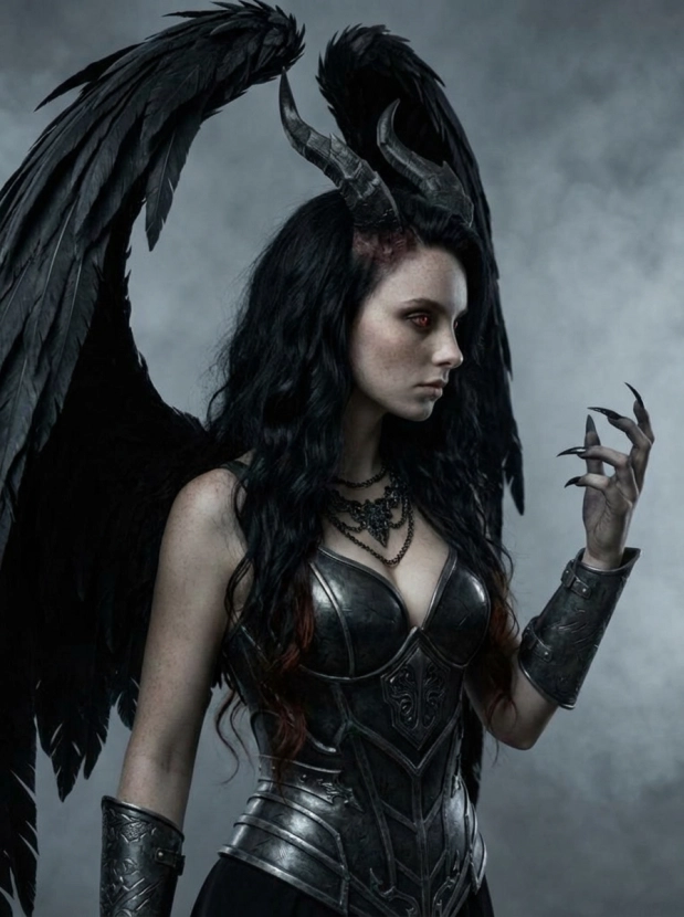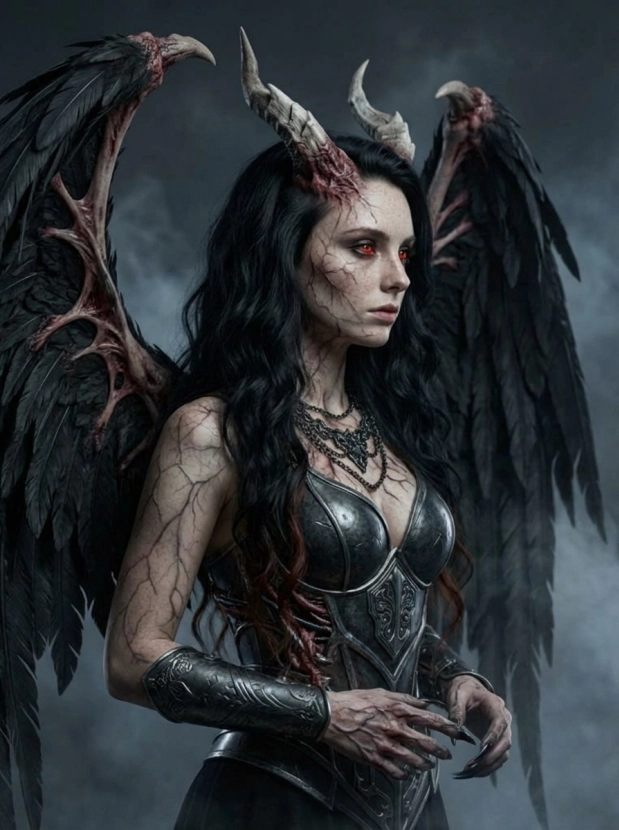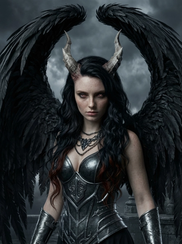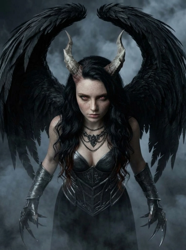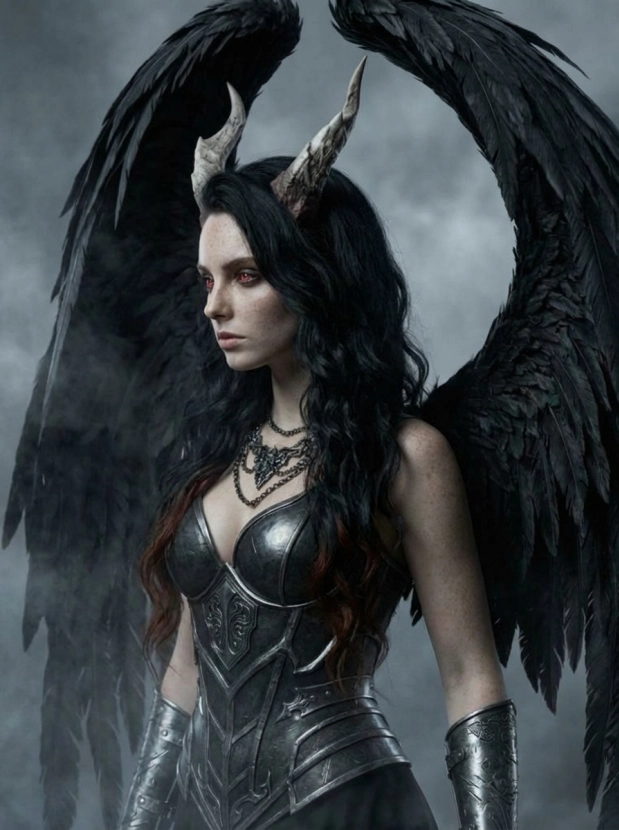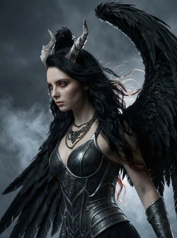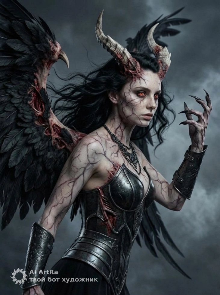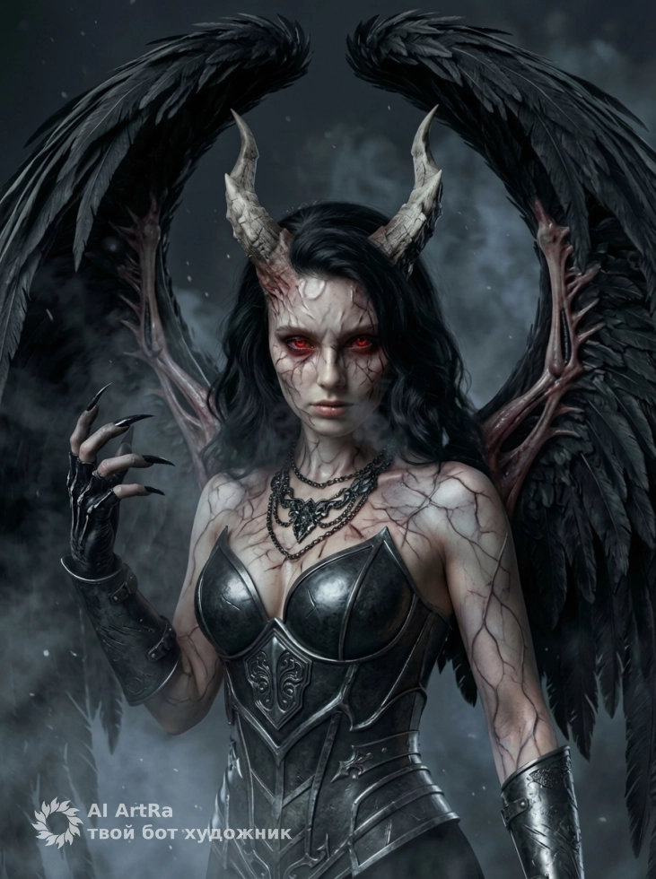 Фэнтези портрет с крыльями демонический образ и атмосфера