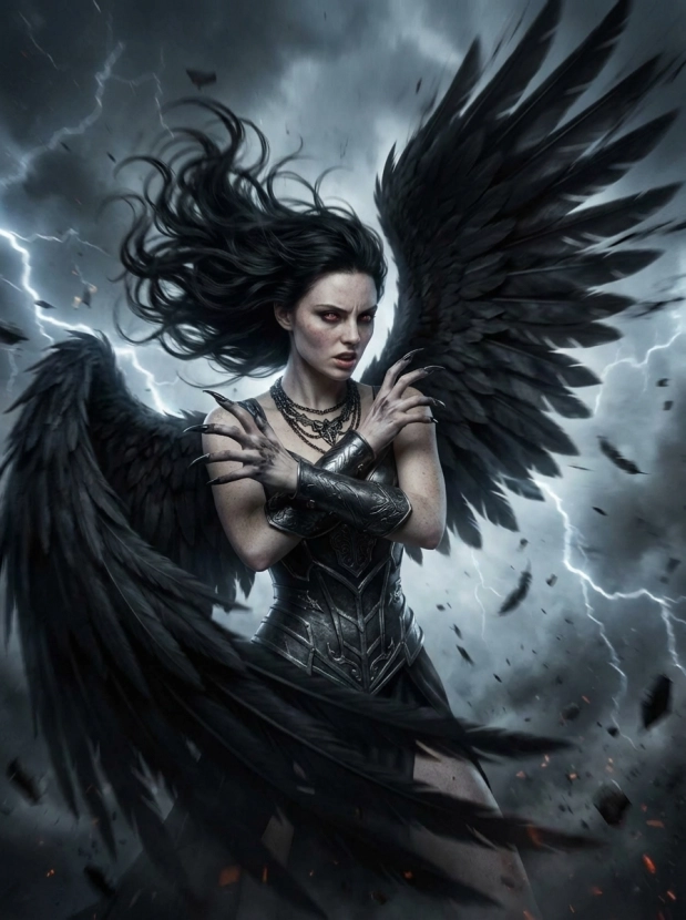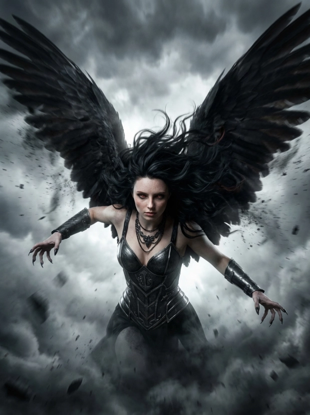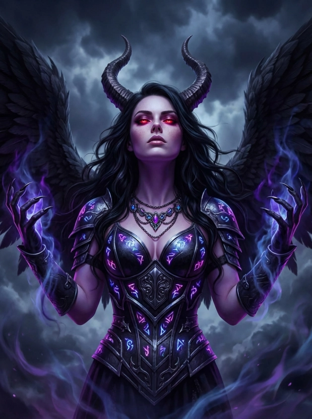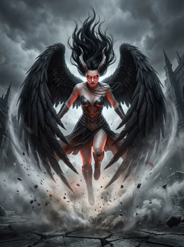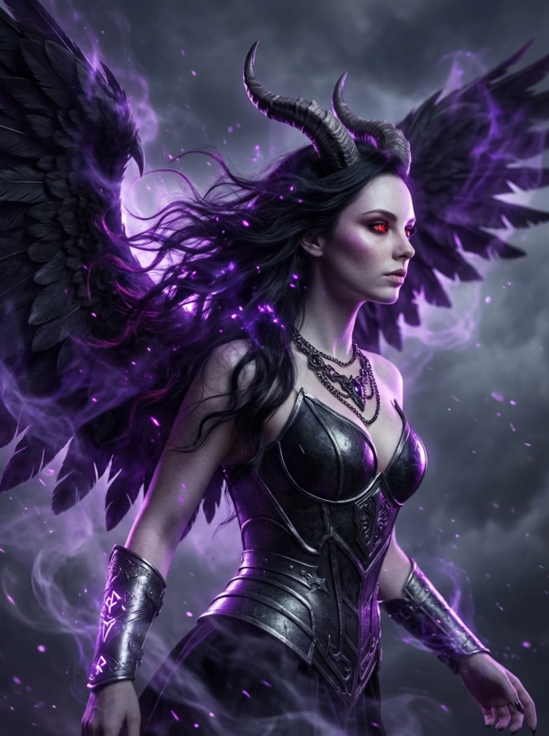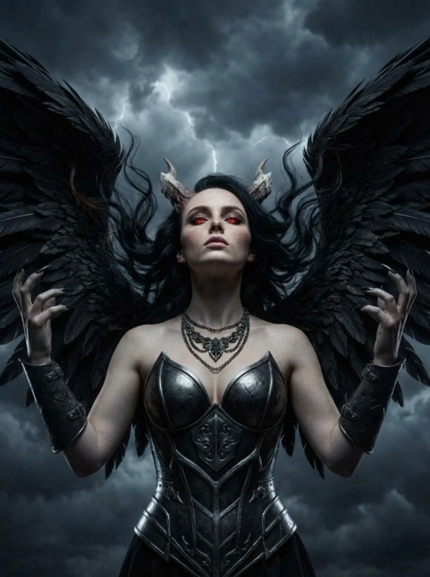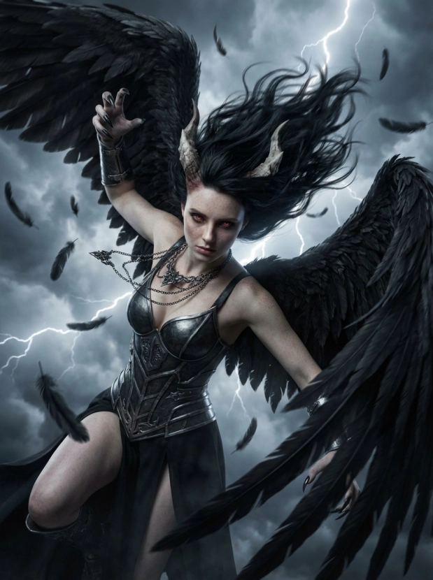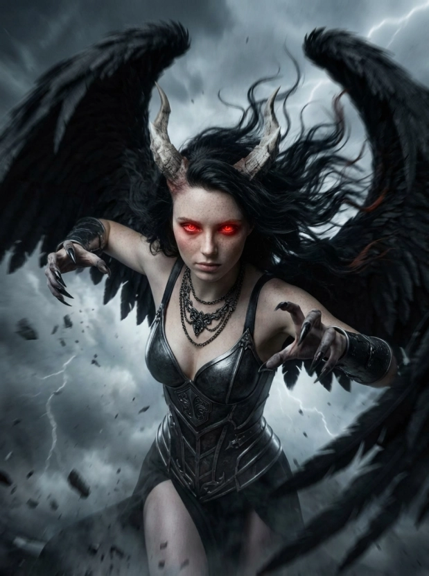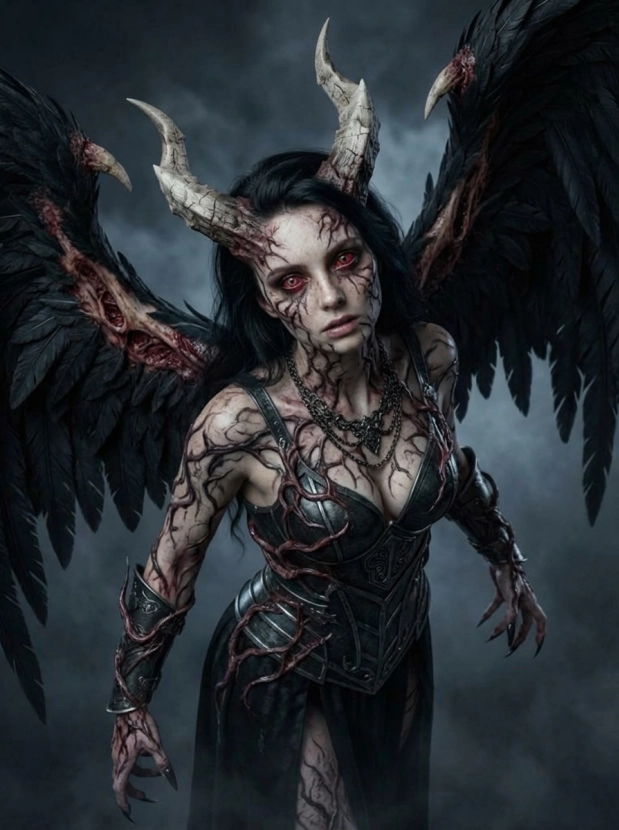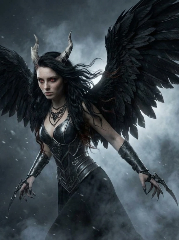 Фэнтези портрет с крыльями демонический образ и атмосфера