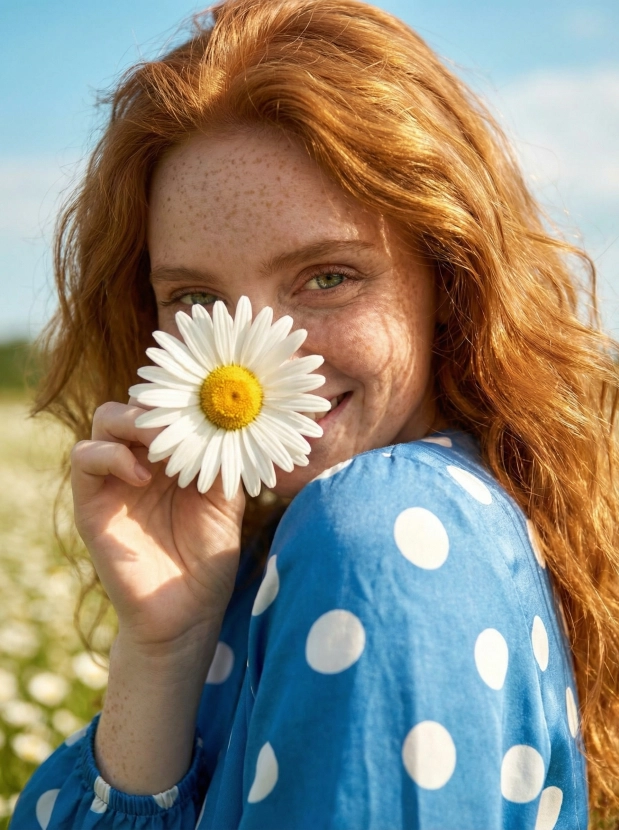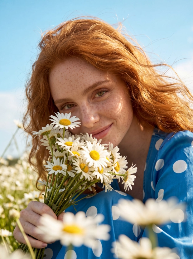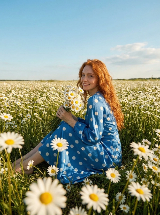 Мечтаете о выразительном фэшн портрете, который отразит вашу индивидуальность? Наш сервис предлагает создать изображение в уникальном стиле Vogue на фоне живописного луга с ромашками. Представьте себе: вас на фоне утреннего солнца, ваши волосы развиваются на ветру, а вокруг цветы подчеркивают весеннее настроение.