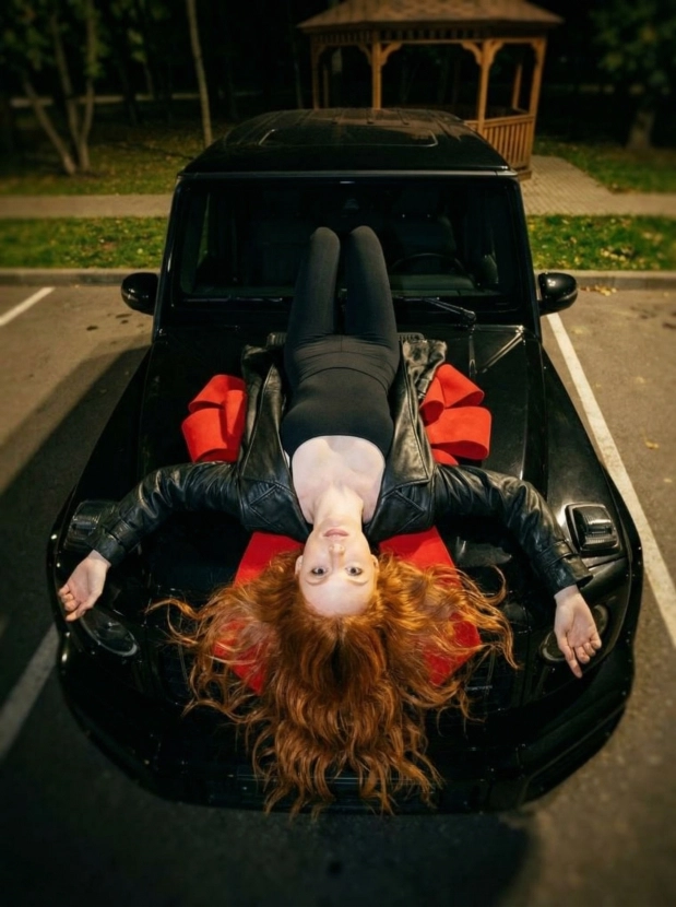 Фэшн портрет с гелендвагеном ночь и дерзкий стиль