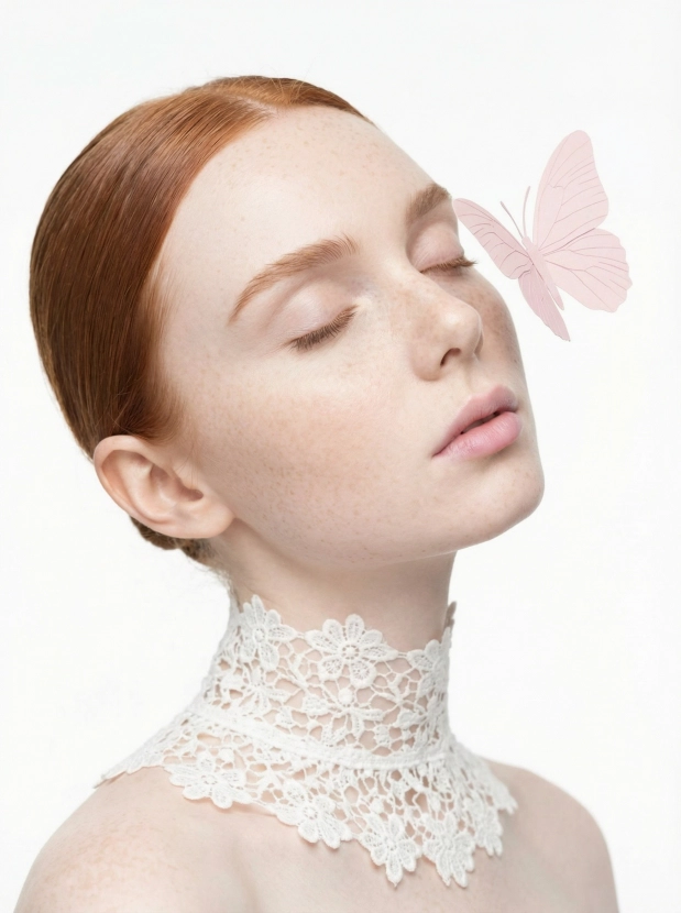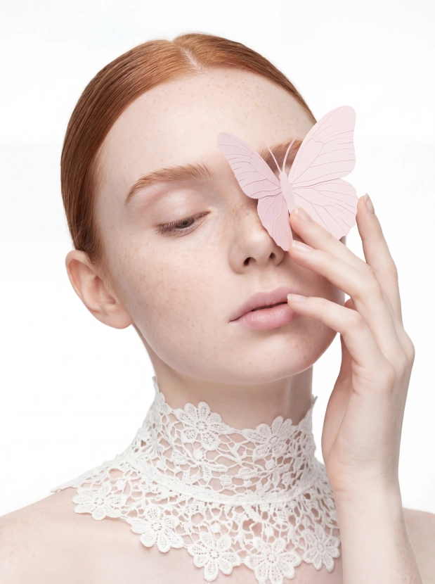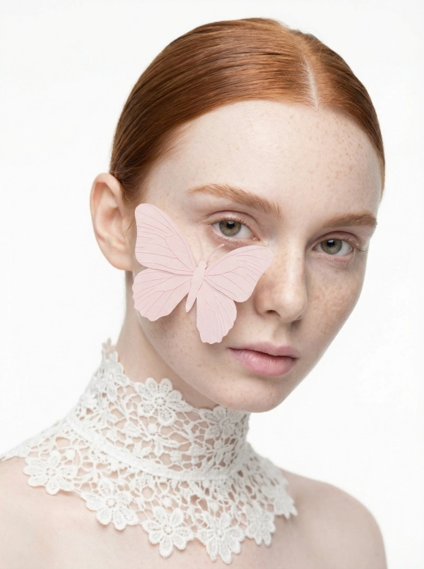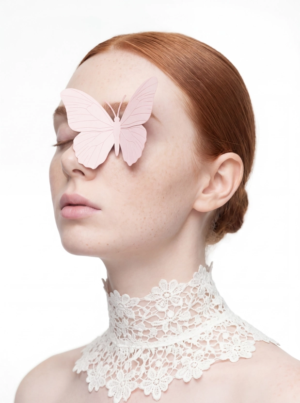 Подумайте о потрясающем эффекте, который несет такой фэшн портрет: идеальное представление о вас, которое дополнит ваши аватарки, контент для постов или обложек. Бабочка, аккуратно расположенная на вашем лице, создаст утонченную и атмосферную картину, которая привлечет взгляды.